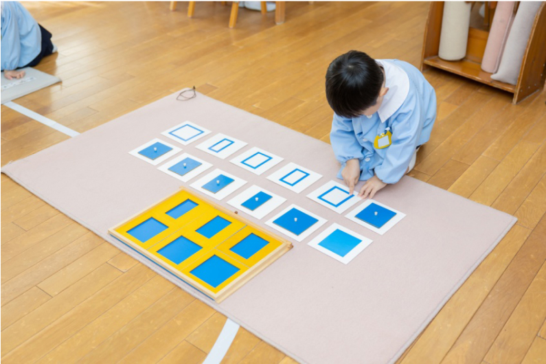 子どもは五感(視覚・聴覚・触覚・味覚・臭覚)を教具の助けを借りて、鋭敏にし、物を認識していきます。3〜6歳は感覚の敏感期と言われます。